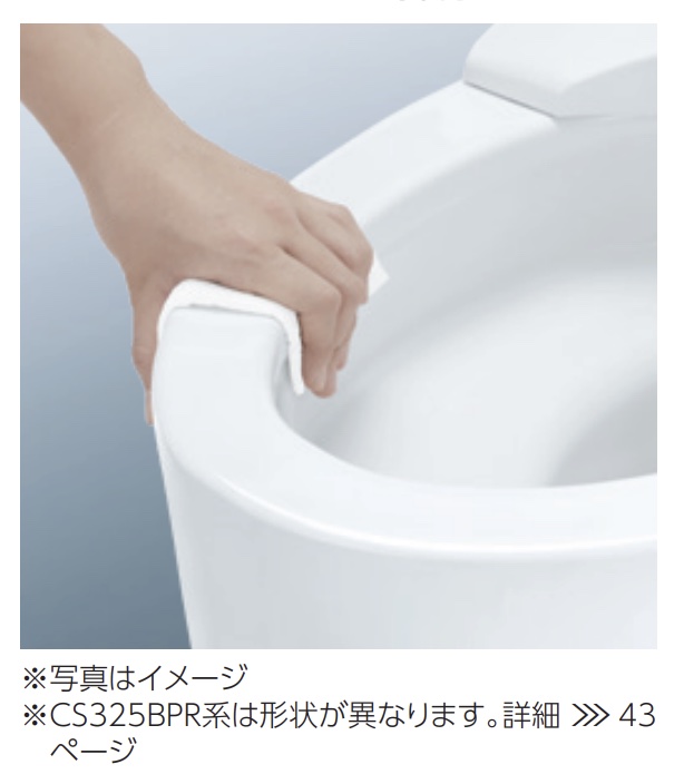 ウォシュレットのホースが便器から、はみ出さずに収納できます。(CS325BPRは搭載していません)
