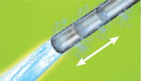 温水を流しながらノズルを移動し、根元から先端まで除菌洗浄します。所要時間は約1分です。