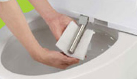 おしり専用&ビデ専用の洗浄口が、ひとつのノズルに内蔵。ノズル内で洗浄口が切り替わるので、使わない 洗浄口はステンレスノズルでしっかり保護します。