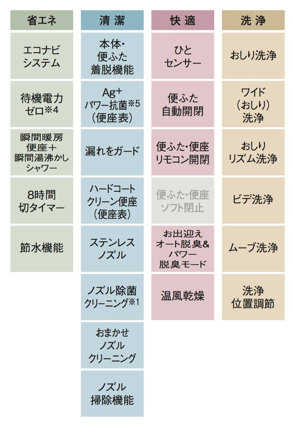 CH832|Panasonic ビューティートワレM2 搭載機能