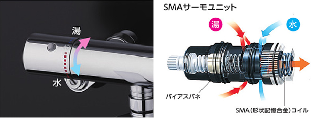 ※お湯は給湯器で沸かしていますのでサーモスタット式でも給湯器の設定温度以上のお湯は出ません ※水栓金具への温泉水の通水は、機能障害・腐食の危険性があるため避けてください。 洗面所用