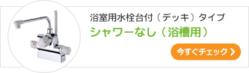 ※お湯は給湯器で沸かしていますのでサーモスタット式でも給湯器の設定温度以上のお湯は出ません ※一部のユニットバスで専用の取付脚(偏心管)がないタイプなどの水栓金具が取り付けされている場合はホームページで販売されている量販的なシャワー水栓が取り付けられない場合があります。 ※銭湯・レジャーランド向けはこちらをご覧ください。 ※ホテル・旅館の大浴場やユニットバス向けはこちらをご覧ください。 ※水栓金具への温泉水の通水は、機能障害・腐食の危険性があるため避けてください。 浴室用水栓台付(デッキ)タイプ