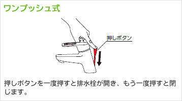 洗面所用水栓ワンホール(1つ穴)タイプとは洗面カウンターなどの天板に穴を1つ開け取り付けられているタイプです。蛇口の取り付け穴はTOTO・LIXIL・KVKなどほとんどのメーカーで直径35mm前後になるため、そのまま交換できます。洗面用蛇口は、排水栓のポップアップ・ワンプッシュ・ゴム栓などとの互換性が交換する場合必要です。現在、使用しているメーカーと同また、蛇口交換する際に、排水栓と互換性がないと排水栓や引き棒蛇口本体のシールなどで貼られている品番や洗面化粧台などのキャビネット内のシールなどで貼られている洗面台の品番で水栓の穴径や取付ピッチなどや互換性を確認をすることが可能です。 排水栓の操作棒の種類